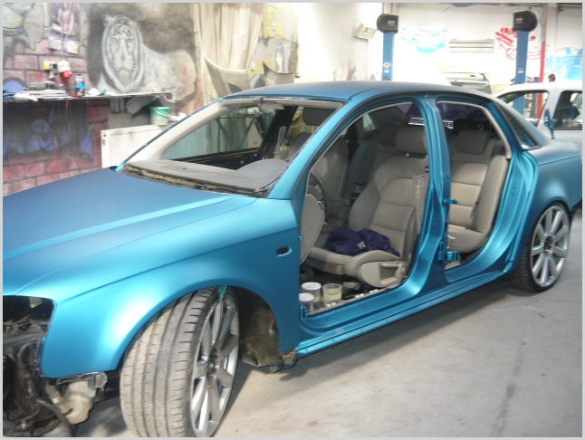 Audi A4, model B7 este un alt proiect cu care ne mandrim. Pe langa procesele de vopsitorie, tinichigerie, mecanica completa, acest Audi a fost implicat si intr-un proces de tuning exterior: vopsea custom, faruri si stopuri vopsite custom, grilaj frontal RS, buza bara fata. De asemenea jantele au fost sablate, indreptate si vopsite tot la Rebel Grafix.